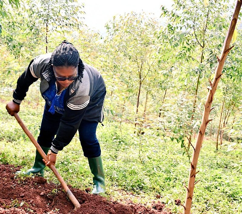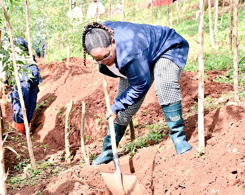 Hon. Depite MUKAMANA Elisabeth mu gikorwa cy'umuganda wo gucukura imirwanyasuri ku musozi wa Kamvumba mu murenge wa Remera