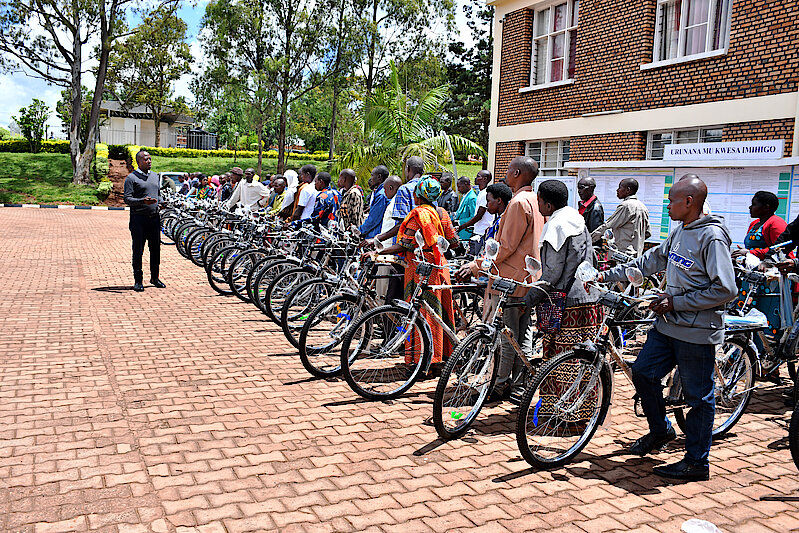 Kuri uyu wa gatatu taliki 27.04.2023 ku cyicaro cy’Akarere ka Ngoma habereye igikorwa cyo gushyikiriza magare 68 abajyanama b’ubuhinzi bahize abanda ku rwego rw’Akagali mu guteza imbere ibikorwa bw’iyamamazabuhinzi mu midugudu basanzwe bakurikirana umunsi ku wundi. Aya magare bayahawe kubufatanye bw’Akarere ka Ngoma, Intara y’iburasirazuba hamwe n’ikigo cy’igihugu gishinzwe Iterambere ry’Ubuhinzi n’Ubworozi (RAB).