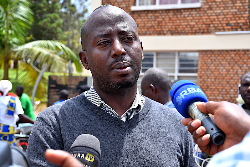 Umuyobozi w'Akarere wungirije ushinzwe iterambere ry'ubukungu Bwana MAPAMBANO NYIRIDANDI Cyriaque yasabye abahawe amagare kuyafata neza.