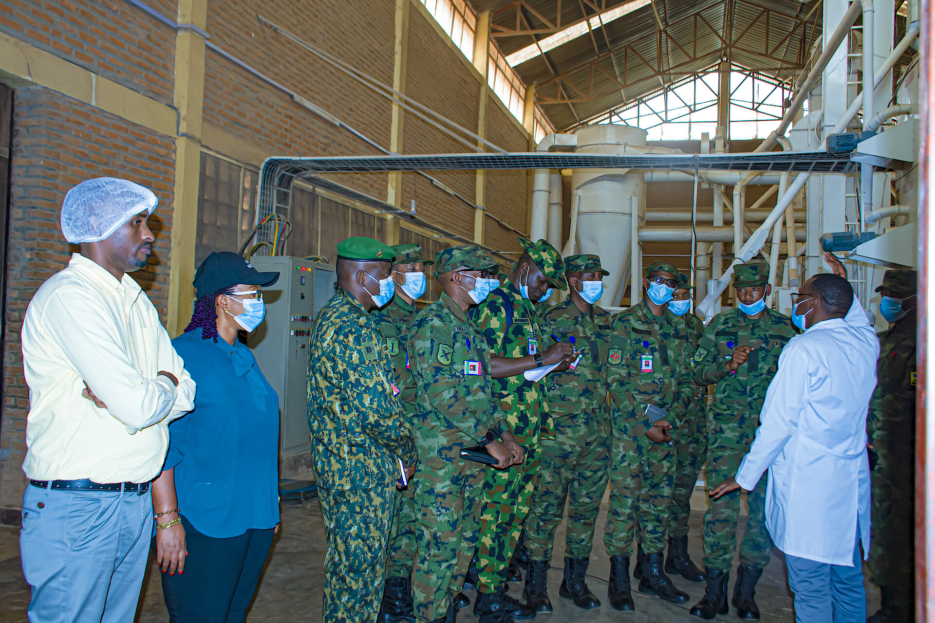 Aba ba Ofisiye basuye uruganda rutunganya umuceri rwitwa "Kirehe Rice" ruherereye mu Karere ka Kirehe basobanurirwa uburyo utunganywa kugeza woherejwe ku isoko.