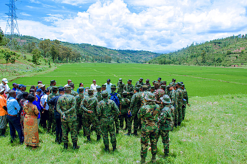 Ba Ofisiye biga mu Ishuri Rikuru rya Gisirikare rya Nyakinama basuye ibikorwa by'ubuhinzi mu turere twa Ngoma na Kirehe.