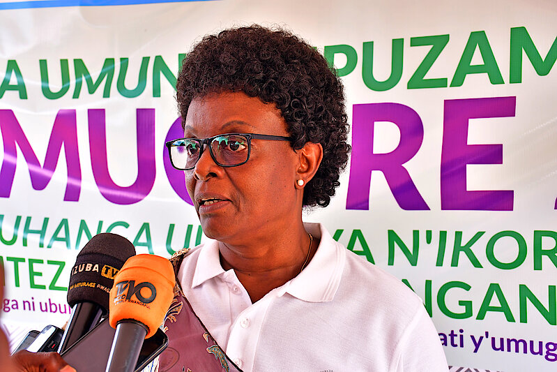 Umushyitsi mukuru Madamu MUKASINE Marie Claire yavuze ko kwizihiza umunsi mpuzamahanga w'umugore uba ari umwanya mwiza wo gusubiza amaso inyuma tukareba ikintu cyose gishobora kwangiza ahazaza h'umwana w'umukobwa tumurinda ihohoterwa kuko iyo ahohotewe umuryango uba wangiritse.