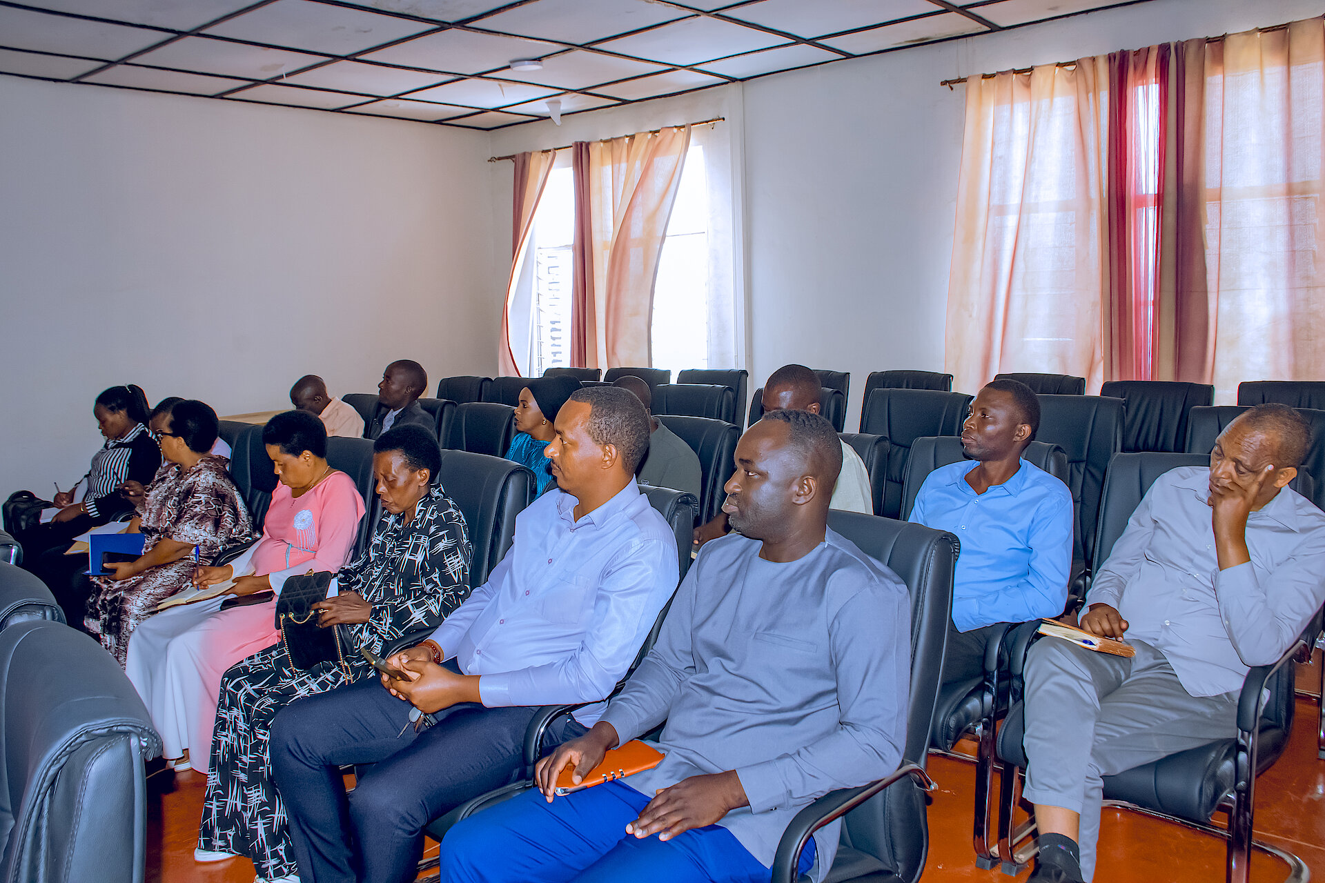 Abagize inama z'ubutegetsi mu Umurenge SACCO hamwe n'abanyamabanga Nshingwabikorwa bitabiriye inama igamije guhuza Umurenge SACCO zikagira bank ku rwego rw'Akarere.