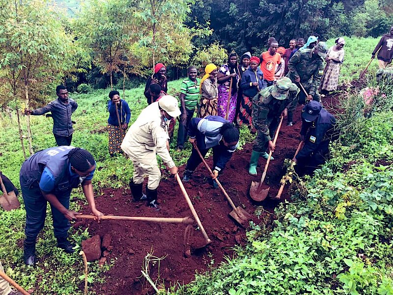 Uyu muganda witabiriwe n’umunyamabangaNshingwabikorwa w'Intara y'Iburasirazuba Dr.NYIRAHABIMANA Jeanne ari kumwe na Perezida w'Inama Njyanama y'Akarere Bwana BANAMWANA Bernard, umuyobozi w'Akarere Madamu NIYONAGIRA Nathalie, Abagize inzego z'umuteno hamwe n'Abajyanama b'Akarere bifatanyije n'abaturage b'umurenge wa Murama, Akagali ka Mvumba mu muganda wo gucukura imirwanyasuri n'ibindi bikorwa byo gufata neza ubutaka no kurengera ibidukikije.