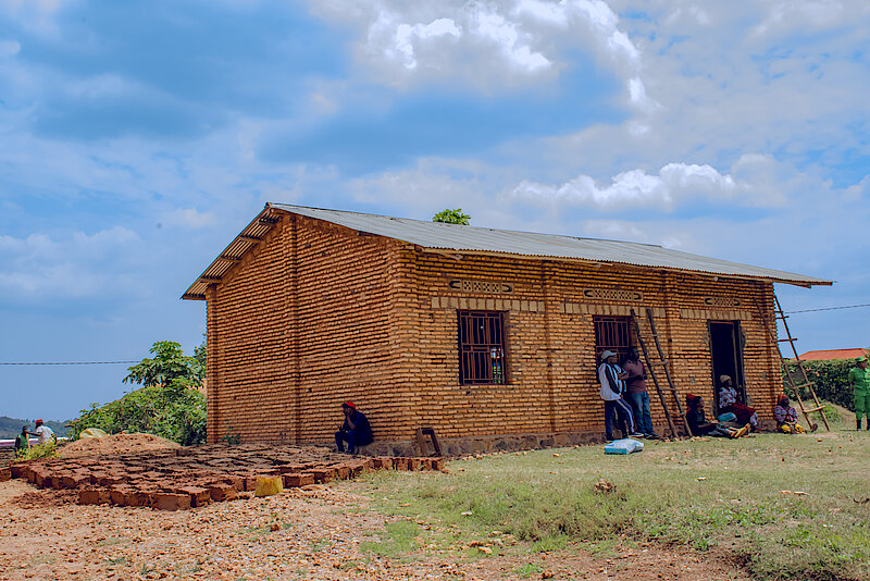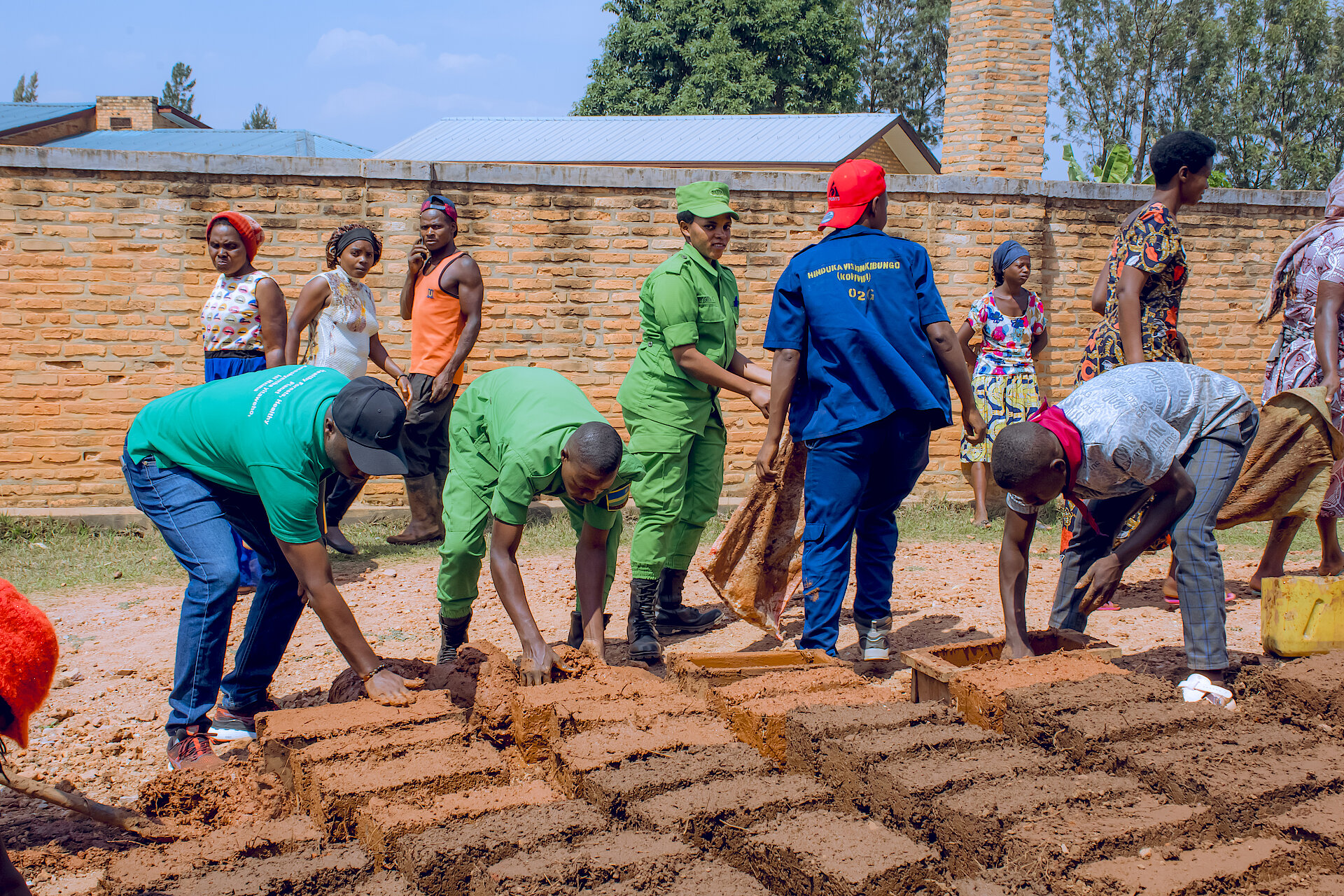 Abaturage batanze umuganda wo kubumba amatafari azubaka igikoni kizifashishwa mu gutegurira abana igikoma.