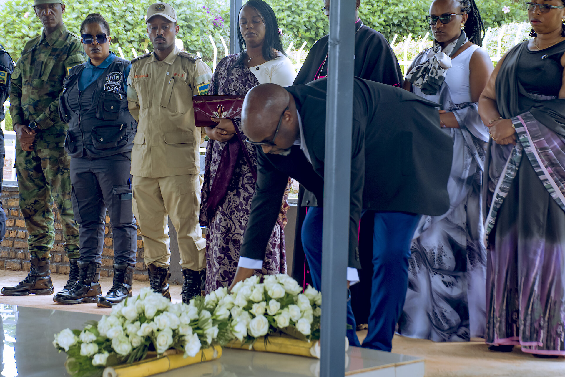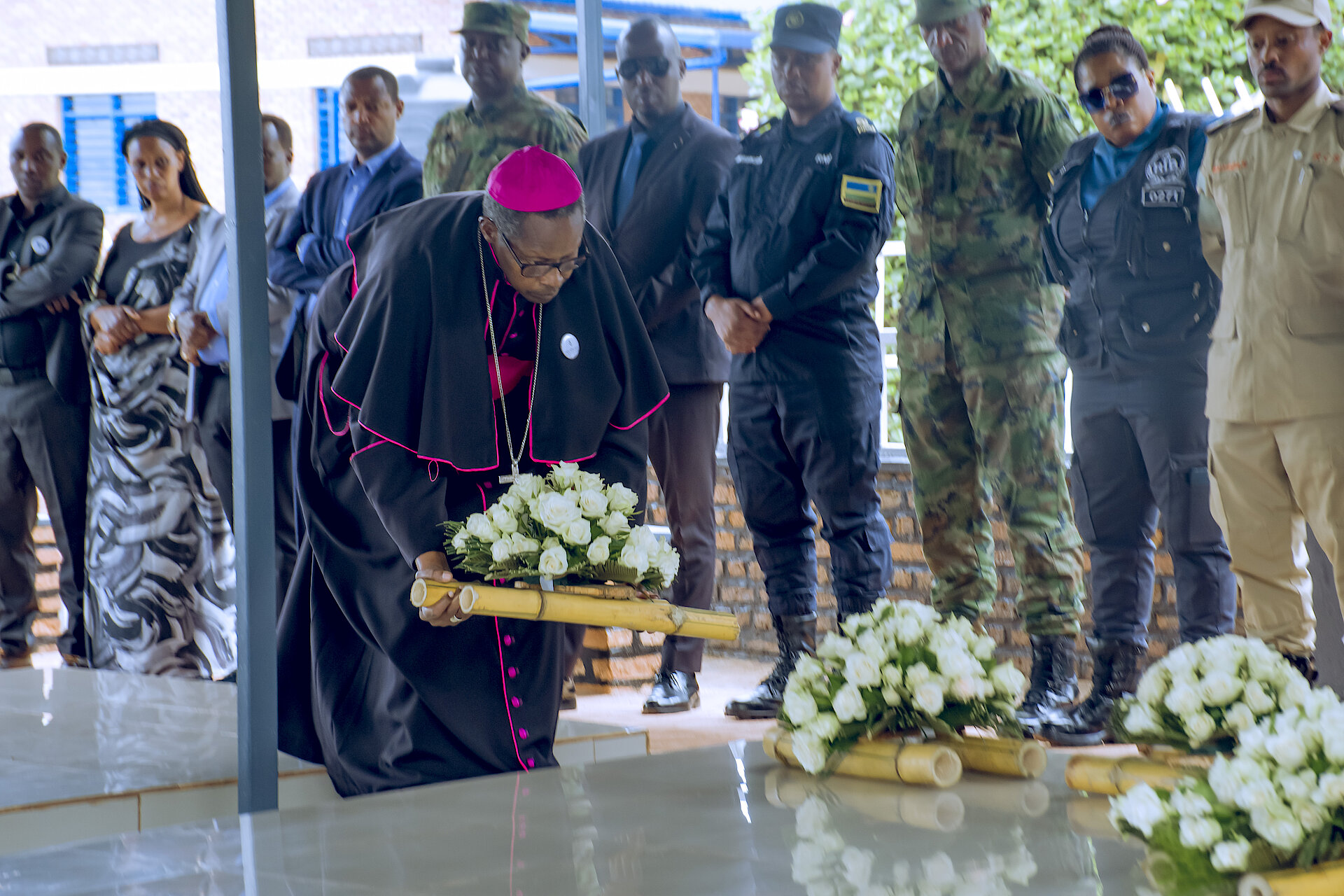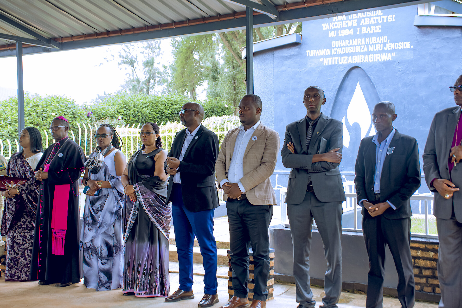 Musenyeri wa Diyosezi ya Kibungo JMV TWAGIRAYEZU nawe yifatanyije n'abandi bayobozi mu kunamira inzirakarengane z'abatutsi bazize jenoside yakorewe abatutsi mu 1994 zishyinguye mu rwibutso rwa jenoside rwa Mutenderi