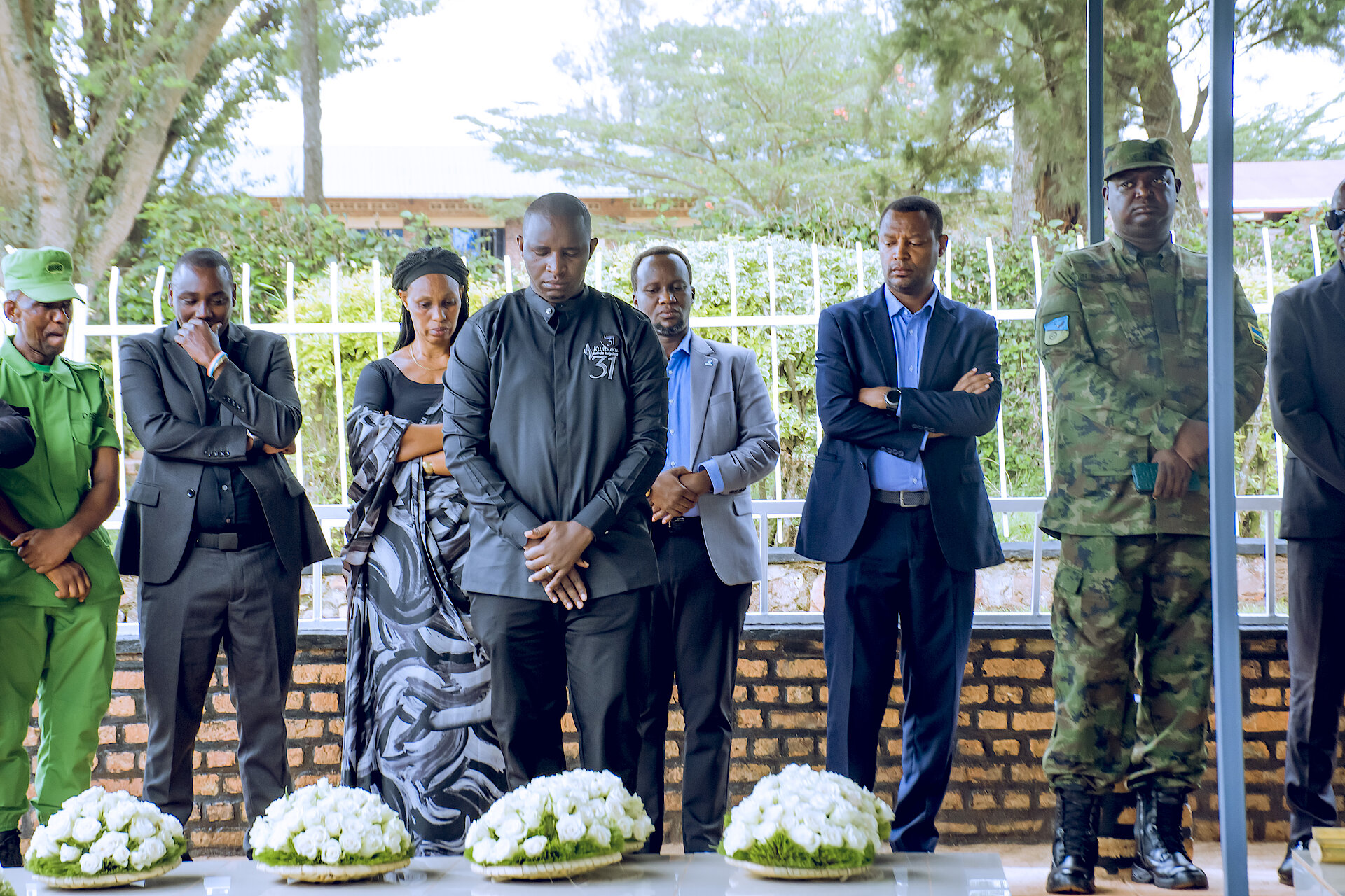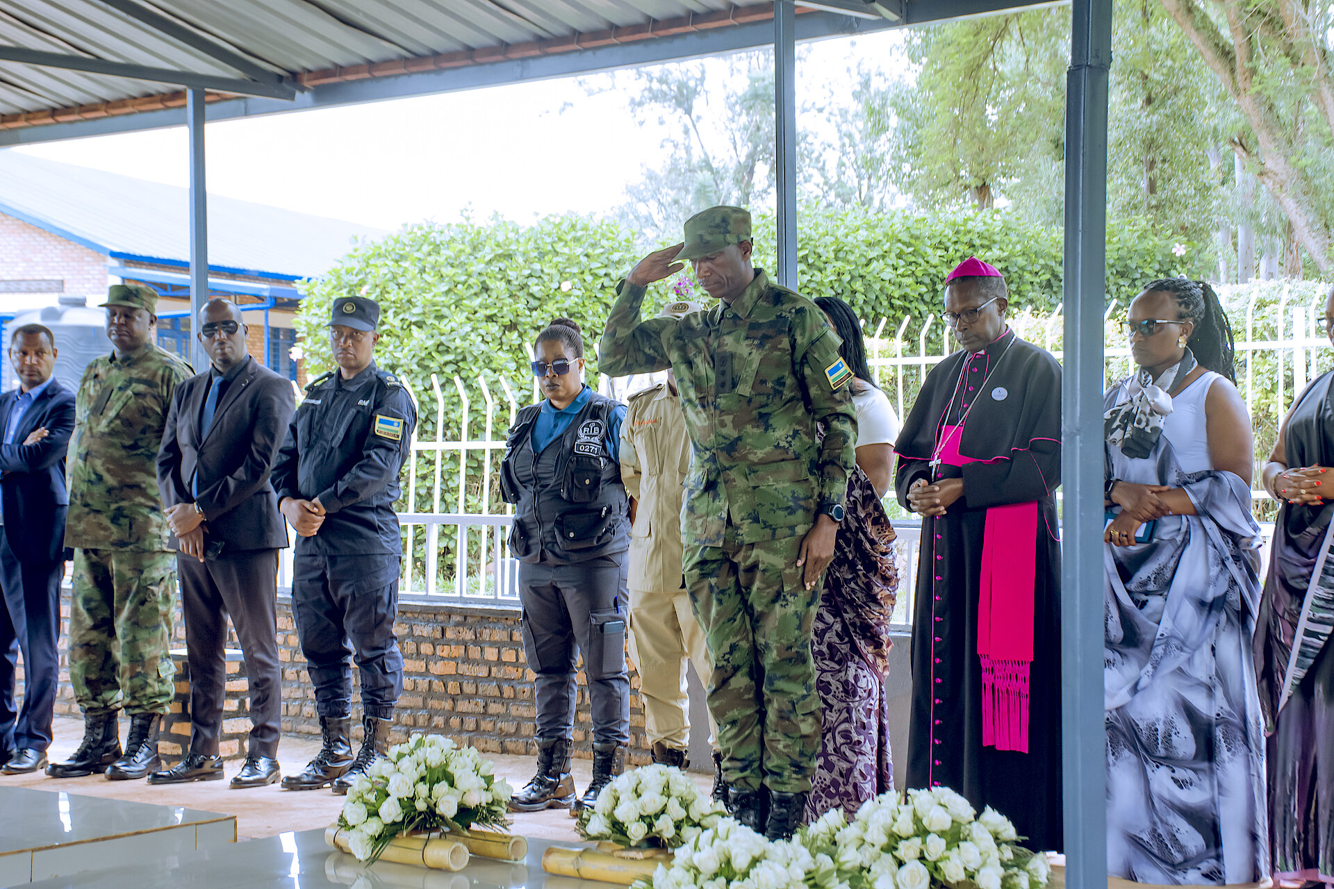 Umuyobozi w'ingabo Col. Pascal MUNYANKINDI (401Bde Comdr) yunamiye imibiri y'abatutsi bashyinguye mu rwibutso rwa jenoside rwa Mutenderi