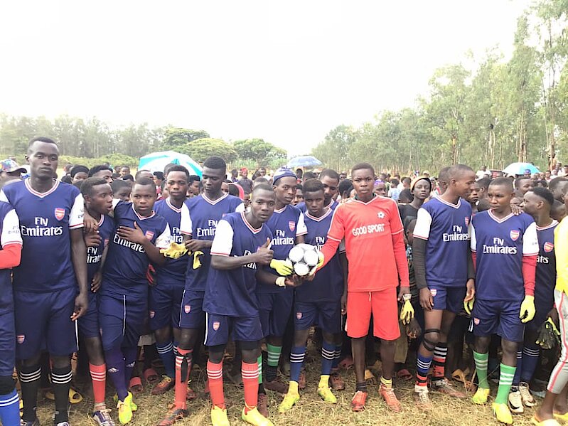 Abasore b'Ikipe y'Akagali ka Karenge nyuma y'umukino bahembwe umupira w'amaguru wo gukina.