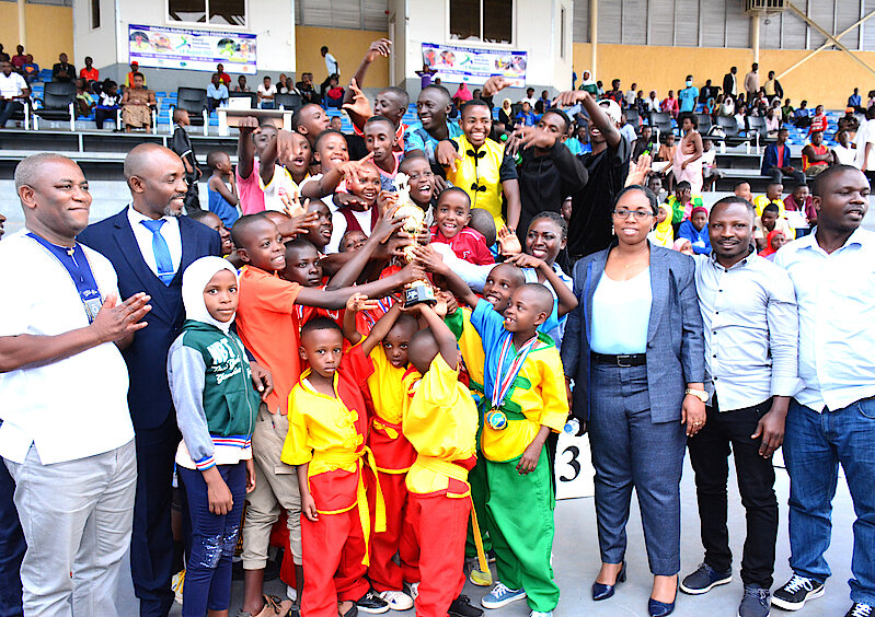 Abana bishimiye kwerekana impazo zabo mu mukino wa Kungu-Fu