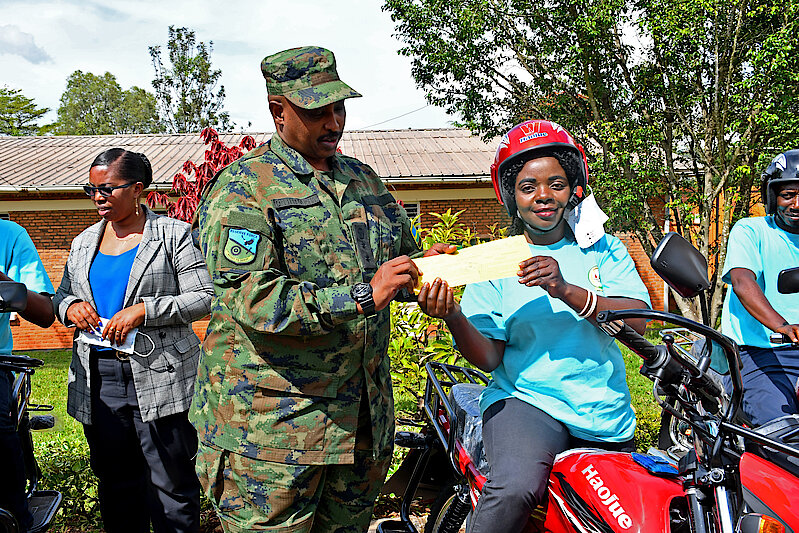 Akanyamuneza kari kose ubwo AbanyamabangaNshingwabikorwa b'utugali bahabwaga Moto.