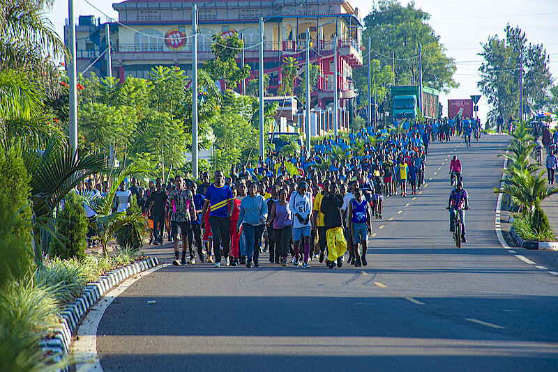Abaturage n'abayobozi bakoze siporo rusange bagenda Km 20 bishimira umuhanda mushya Ngoma-Bugesera