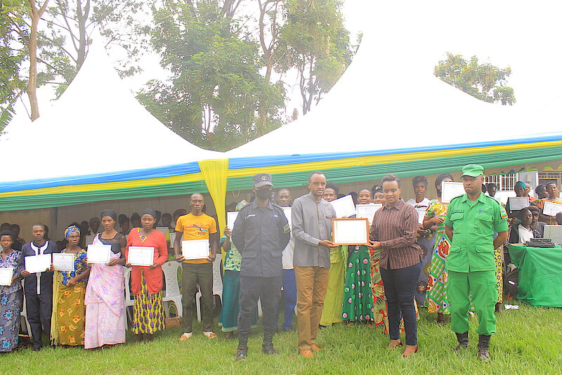 Ni igikorwa cyitabiriwe kdi kiyoborwa n’umuyobozi w’Akarere wungirije ushinzwe imibereho myiza y’abaturage Madamu MUKAYIRANGA Marie Gloriose. Muri ibi birori byo gutanga impamyabumenyi kubigishijwe gusoma kwandika no kubara bakuze bagera kuri 236 wabaye umwanya mwiza wo kugaragaza ishusho y’imiterere y’ikibina cy’abiga n’abigisha mu masomero, aho kigamije korozanya amatungo magufi, kwishyura mutuelle de santé no kugurizanya amafaranga y’ishuri, ubu kikaba kimaze kubageza kuri byinshi mu rwego rwo kwikura mu bukene no ushyigikirana mu iterambere ry’umuryango.